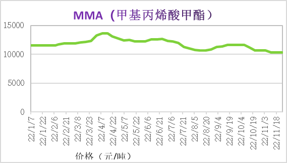 預測:預計2022年11月底至2022年12月初“丙烯酸樹脂”價格維穩。